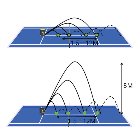 Launch height from 20°-60°, Combined with ball speed changes.It can simulate more than 90% of the coach feed.