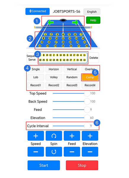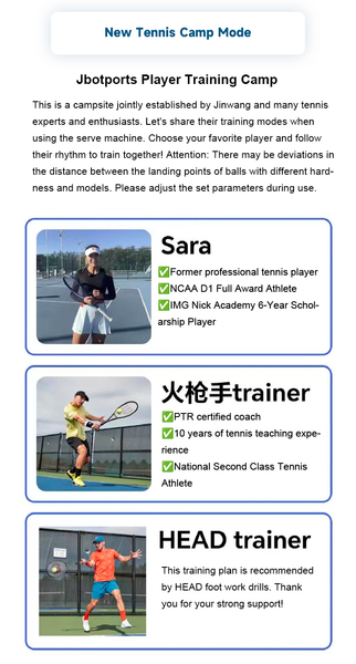 APP “Jbotsports” helps you control the machine from the other end of the court. Adjustable serve speed, topspin and backspin. Many other function as pictures show below. Support Android and iOS system.