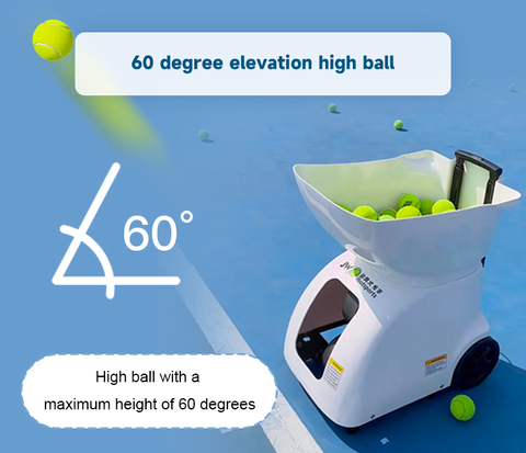 - Adjustable Ball Speed and Frequency: Ball speed can be adjusted from 20 to 120 km/h, with a frequency range of 2 to 10 seconds. The height adjustment ranges from 12 to 60 degrees, and the machine can hold up to 120 balls. This range caters to players from beginners to advanced levels.