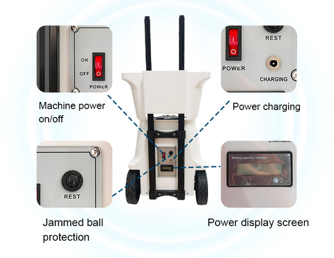 - New Turntable and Auto-Stop Feature: The turntable's rotational function reduces ball jamming, and the machine automatically stops when out of balls, saving battery life.